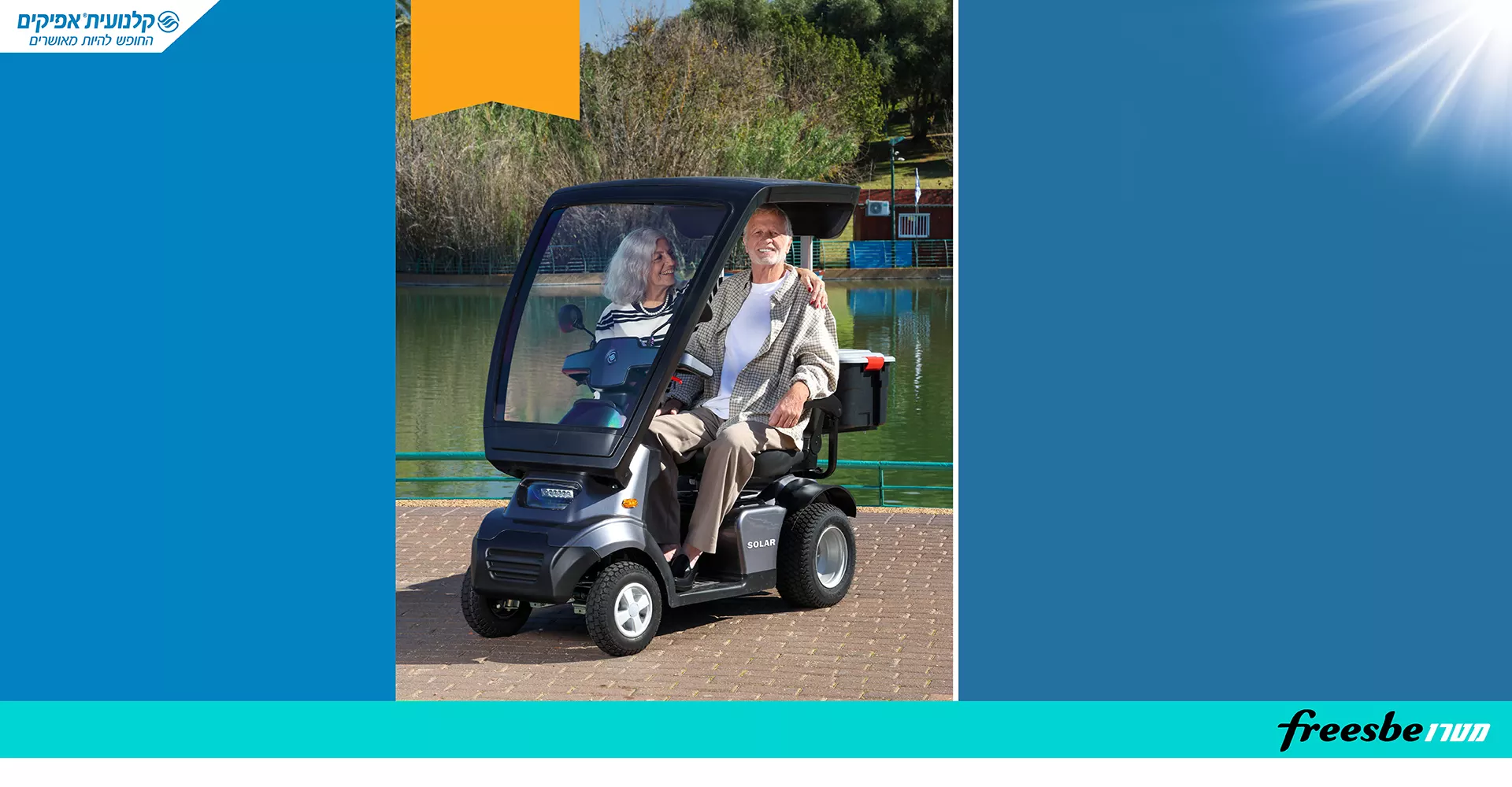 על פי נתוני היצרן. טעינה משני מקורות, טעינה מפאנל סולארי ומשקע חשמל, הקלנועית אינה היברידית. התמונה להמחשה בלבד.